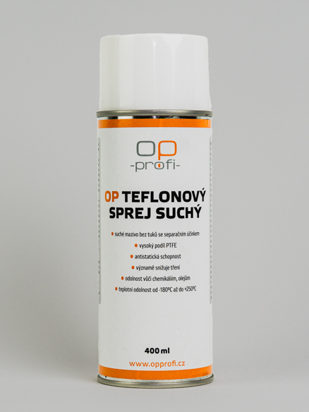 OP Teflonový sprej je suchý, čistý, mimořádně mechanicky a chemicky odolný prostředek na bázi kvalitního PTFE.